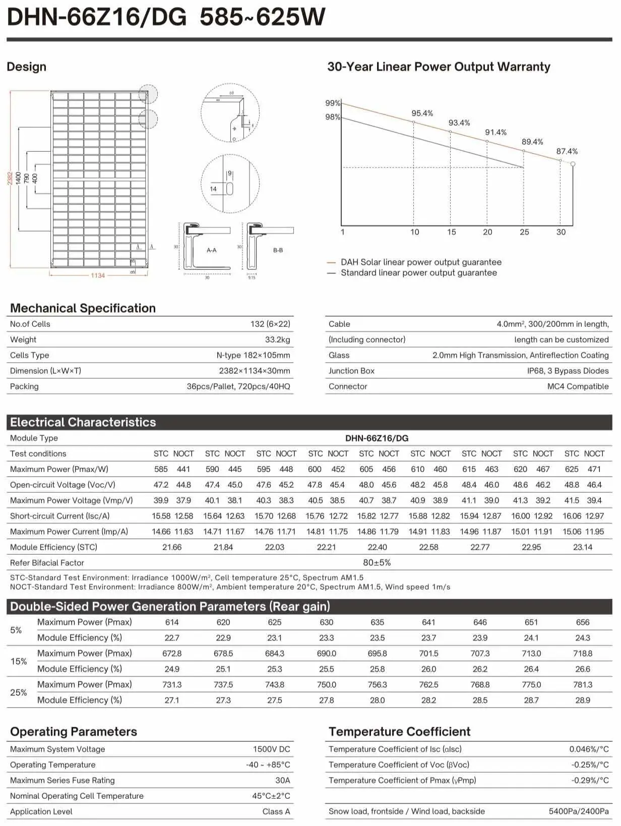 On Grid 585W~625W Bifacial PV module