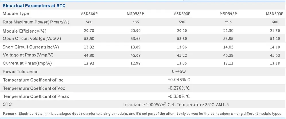 The MSD600M-156 series is a high-performance monocrystalline solar panel equipped with 182 high-efficiency half-cut solar cells. Specifically designed to provide dependable energy solutions, this solar panel is an excellent choice for residential, commercial, and industrial applications.