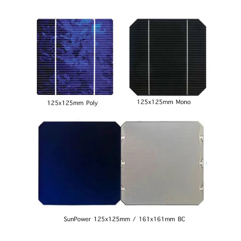 In this article, we cover the main solar cell sizes, efficiency ranges, types (monocrystalline vs. polycrystalline, P-type vs. N-type, TOPCon, HJT, and BC cells), and their practical applications.