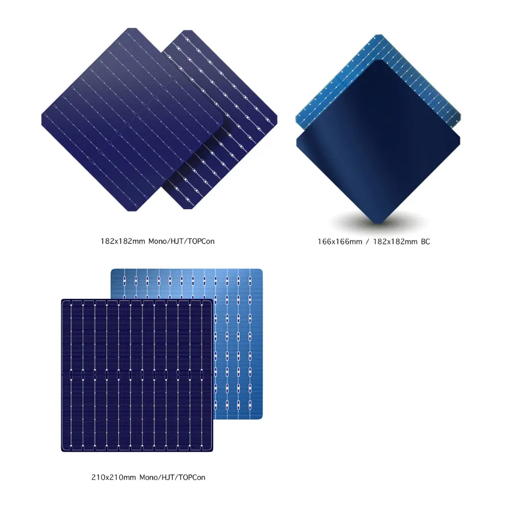 182 mm × 182 mm | M10 | Mono P-type / N-type / TOPCon / HJT / BC | 20–24% | 2021–Present | 500–600 W | Utility-scale & high-power residential/commercial |
